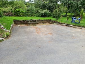 This was one of the first jobs completed fresh out of lockdown. We even had a couple of little helpers from time to time whilst the schools were shut. Proving that we are happy to adapt to the situation and work around the new schedules that covid-19 has caused us to adopt in a safe manner of course). This old pre-cast concrete garage and slab had some serious subsidence. We therefore had to take away everything that was effected, build a new retaining wall using gabion baskets with stone infill and pour a new reinforced concrete slab. Groundworks is just one aspect of construction that we are willing to take on and should the customer want one in the future, we would be happy to build a new carport or garage to fill the space. Can’t beat working working somewhere with a view either.